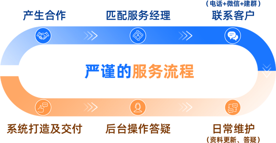 首页 > 核心优势企商通招商服务团队,秉承客户为先的理念、以“助力实体企业电商化转型孵化器”为指导方向,保障平台用户及创业者的价值,为传统行业的发展以及实体商家的诉求提供深度营销落地方案支持,帮助客户进行行业市场分析、品牌及商品营销策划、新媒体营销推广、私域社群运用培训和电商运用培训等多项输出,有效帮助中小微企业迅速掌握企商通平台各类营销模式,充分利用互联网渠道增加企业销售业绩,同时提高管理执行效率。